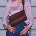 Ayarlanabilir askılı omuz çantası. Yumuşak yapı. Ağız kısmında bulunan 4 adet gizli mıknatıs sayesinde kolay ve güvenli kapama. Pamuklu, ayarlanabilir omuz askısı. Vegan deriden üretilmiştir. İçi vegan süet astarlı, iç cepli.