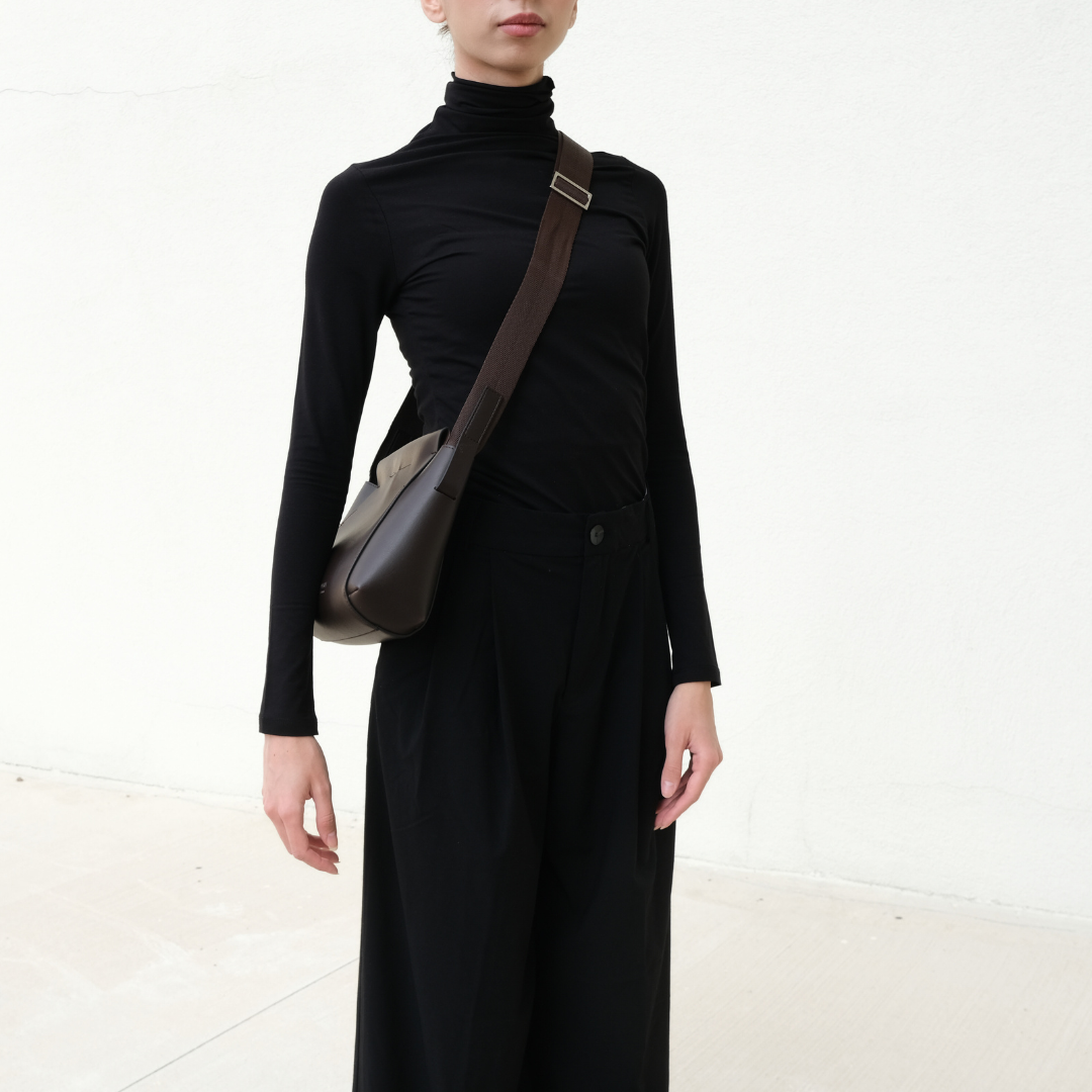 Ayarlanabilir askılı omuz çantası. Yumuşak yapı. Ağız kısmında bulunan 4 adet gizli mıknatıs sayesinde kolay ve güvenli kapama. Pamuklu, ayarlanabilir omuz askısı. Vegan deriden üretilmiştir. İçi vegan süet astarlı, iç cepli.