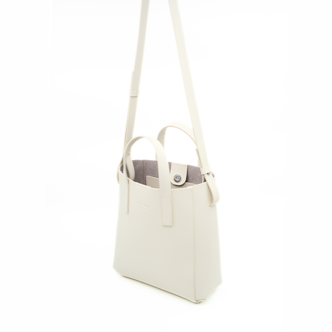 Thanks to its adjustable and removable handle, Joy can be used in hand, on the shoulder or cross-body. Joy, which has a magnetic mouth structure and a hidden inner pocket, is made of water-repellent vegan leather.