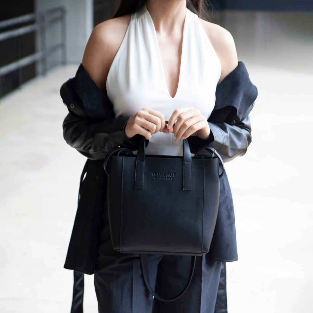 Thanks to its adjustable and removable handle, Joy can be used in hand, on the shoulder or cross-body. Joy, which has a magnetic mouth structure and a hidden inner pocket, is made of water-repellent vegan leather.