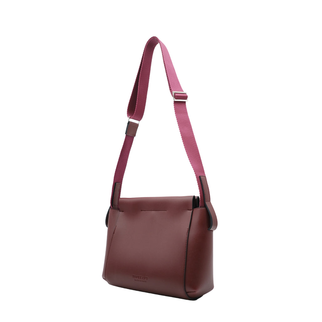 Ayarlanabilir askılı omuz çantası. Yumuşak yapı. Ağız kısmında bulunan 4 adet gizli mıknatıs sayesinde kolay ve güvenli kapama. Pamuklu, ayarlanabilir omuz askısı. Vegan deriden üretilmiştir. İçi vegan süet astarlı, iç cepli.